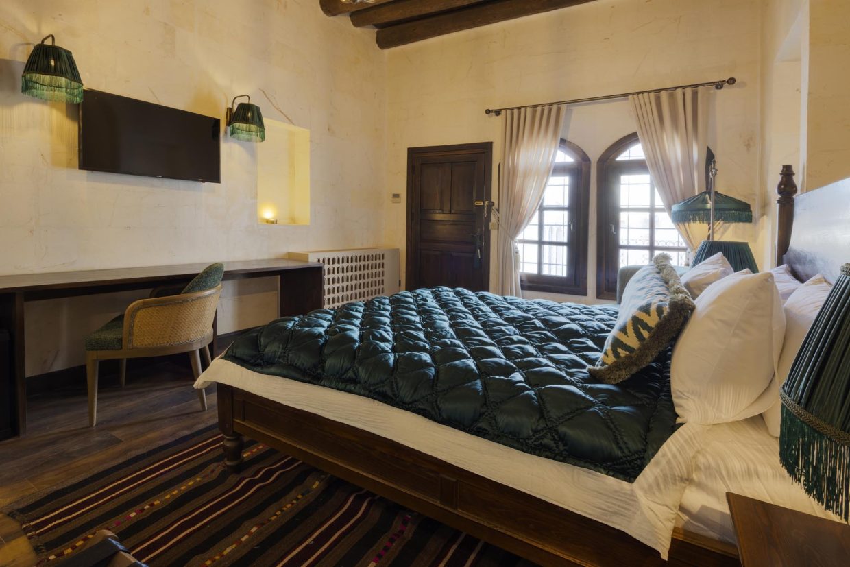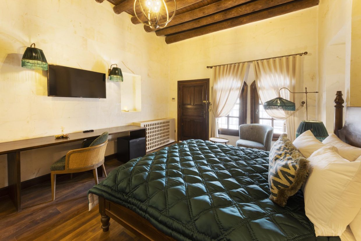 Geniş yaşam alanı ve şık banyosuyla bu odamız, şehrin tarihi dokusunu konforundan ödün vermeden yaşamak isteyenler için tasarlandı.