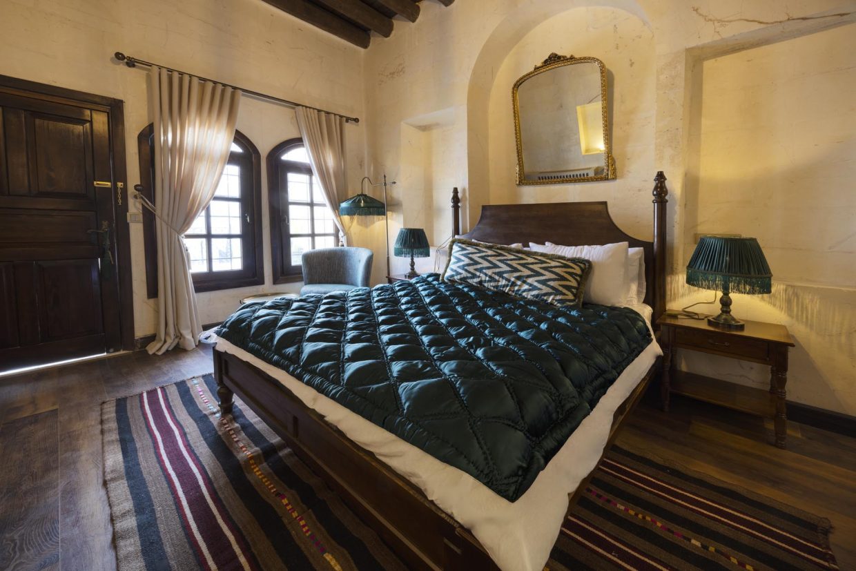 Teraslı Deluxe Oda 202, Zerzembe’nin tarihi mimarisini modern konforla buluşturan özel odalarından biridir. Yüksek ahşap tavanları, taş duvarları ve sıcak aydınlatmasıyla geleneksel Urfa evlerinin ruhunu yaşatırken; konforlu çift kişilik yatağı, şık oturma alanı ve zarif dekoratif detaylarıyla misafirlerine ayrıcalıklı bir atmosfer sunar.